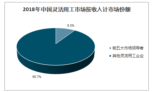 2018年中國靈活用工市場(chǎng)按收入計市場(chǎng)份額
